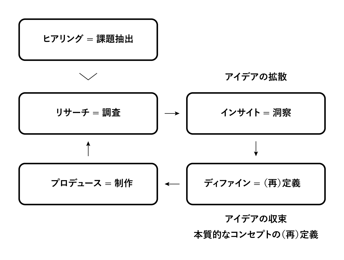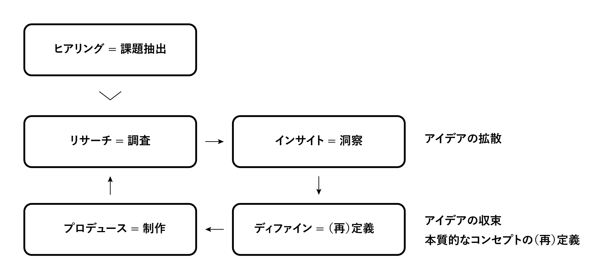 サンポノでは、ヒアリングによる課題抽出後、デザイナー視点のリサーチをし、その後、改善のための洞察を行っています。洞察によって拡散されたアイデアの中から、事業にとって有益になる本質的なコンセプトを再定義し、デザイン制作に至ります。制作されたデザインは、リリースされた後、放置されるのではなく、定期的なメンテナンスや改修によって、事業の成長をサポートします。